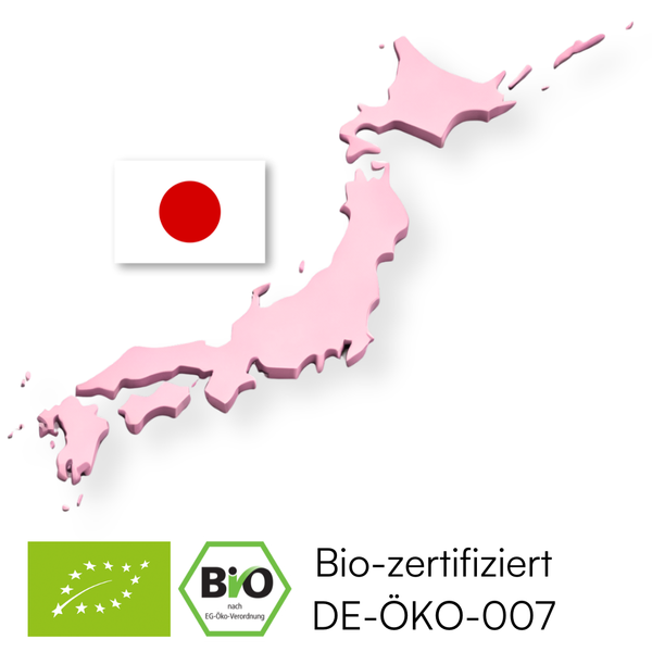 Unser Matcha ist hergestellt aus hochwertigem grünen Tee aus Kagoshima, Japan. Zusätzlich erfüllt unser Matcha strenge Auflagen und ist Bio zertifiziert nach DE-ÖKO-007.