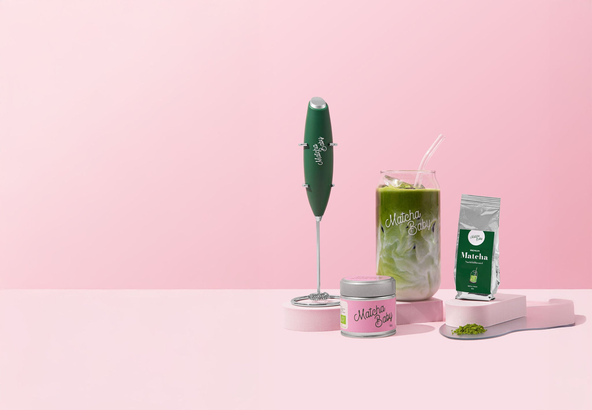 Jetzt deinen Matcha auf deine Lieblingsmilch (Sojamilch ist unser Fav!) gießen. Kurz umrühren. Fertig ist dein Matcha Baby Glück!