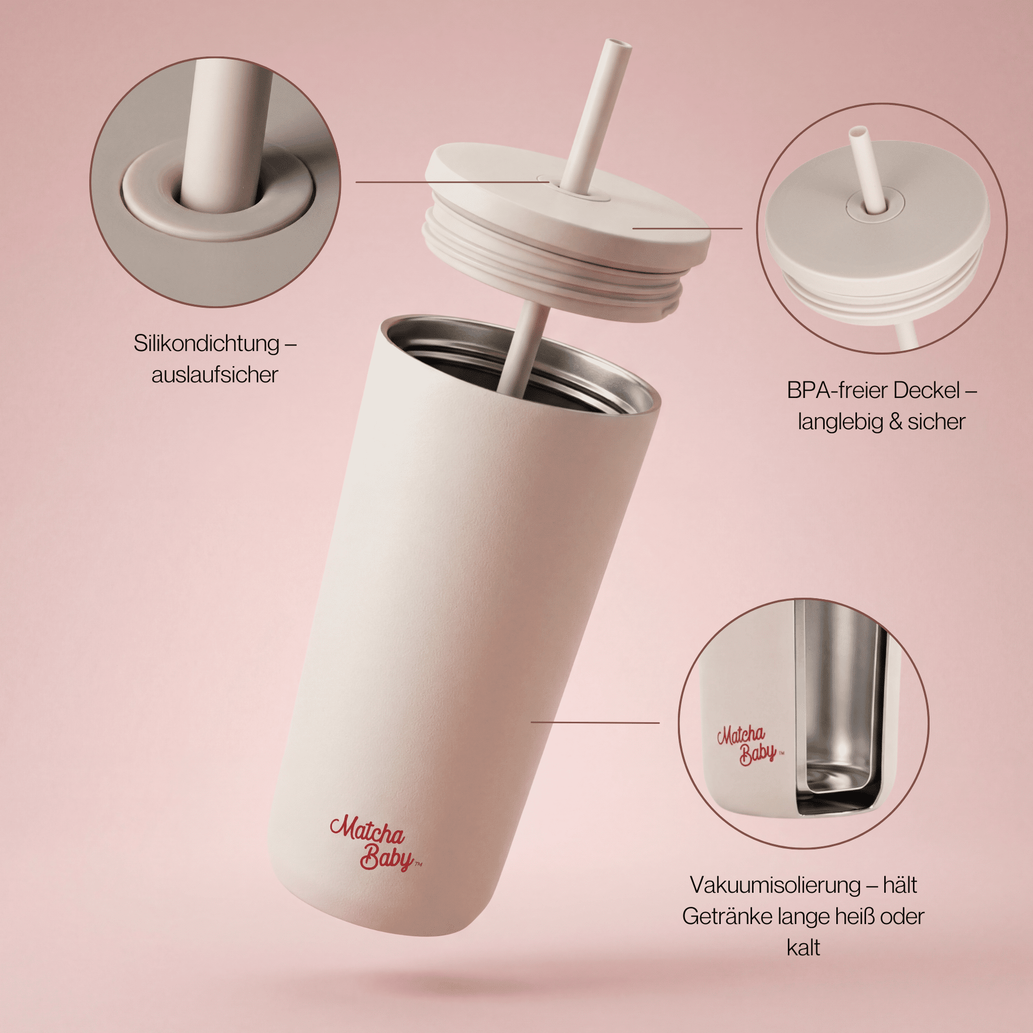 ✔️ Matcha To Go Becher (Metall-Tumbler, doppelt isoliert)